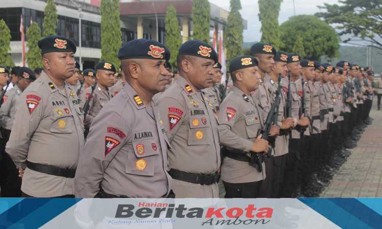 AMBON, BERITAKOTAAMBON.ID - Kepolisian Daerah Maluku menggelar apel gabungan yang dipimpin Komandan Satuan Brigade Mobil (Dansat Brimob), Kombes Pol. Irfan S.P. Marpaung, di Lapangan Letkol Pol (Purn) Chr. Tahapary, Tantui, Kota Ambon, Senin (17/11).