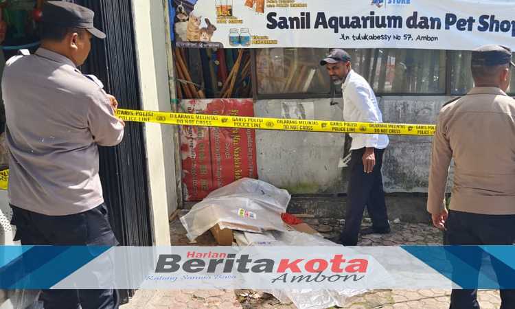 AMBON, BERITAKOTAAMBON.ID - Pasca ditemukan sesosok mayat jenis kelamin laki-laki di di depan toko Sanil Aquarium dan Peth Shop Jl Telukabessy Kecamatan Sirimau, Kota Ambon, Senin, (27/10), personel Polresta Pulau Ambon dan Pp Lease mulai melakukan penyelidikan atas insiden tersebut.